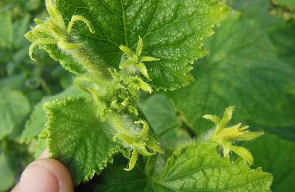 黃瓜生長期需鉀量最多,結(jié)瓜期需鉀量迅速增多,土壤缺鉀,會出現(xiàn)蔓細葉小,果實不能正常膨大,或化果。因此要適時適量的補施鉀肥。土壤氮肥不足,會造成葉片薄而小,生長緩慢,且黃化。植株矮小,花少花小,化果嚴重。易出現(xiàn)畸形果。嚴重缺氮,全株黃化,不坐果。